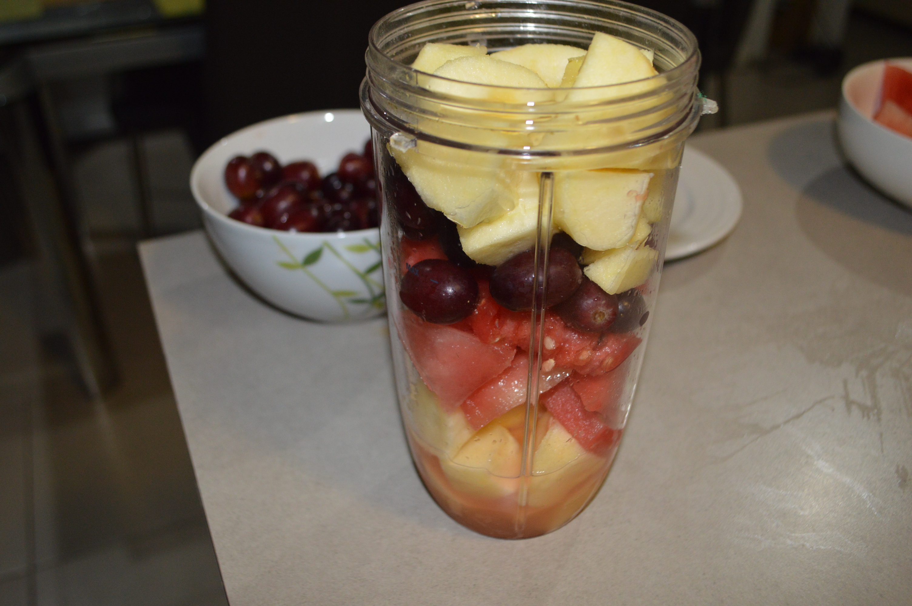 - Add all fruits to the jug/cup of your blender/extractor.